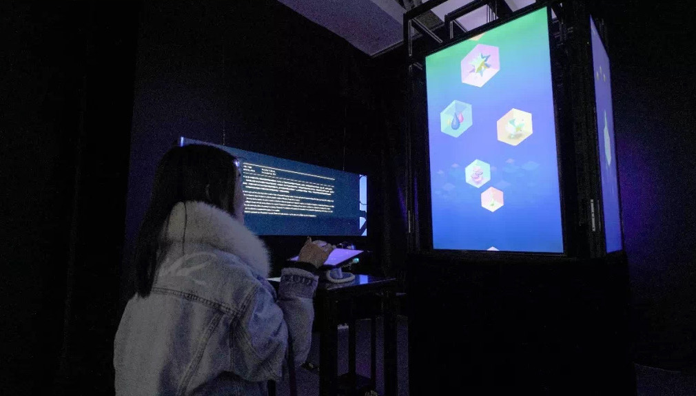 作品简介:在 AI City 的城市接口模块中,观众可以选择四种未来城市的发展模式,由多模态媒体互动组成的交互系统及操作手册帮助观众建立了一套完整的观展体验。