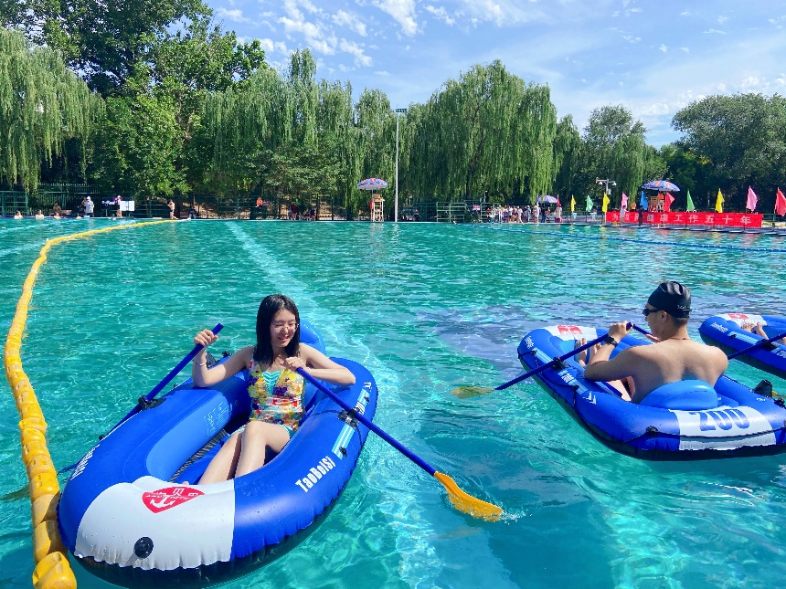 师生参与游泳嘉年华趣味赛事(水上排球、赛艇、顶球过河)