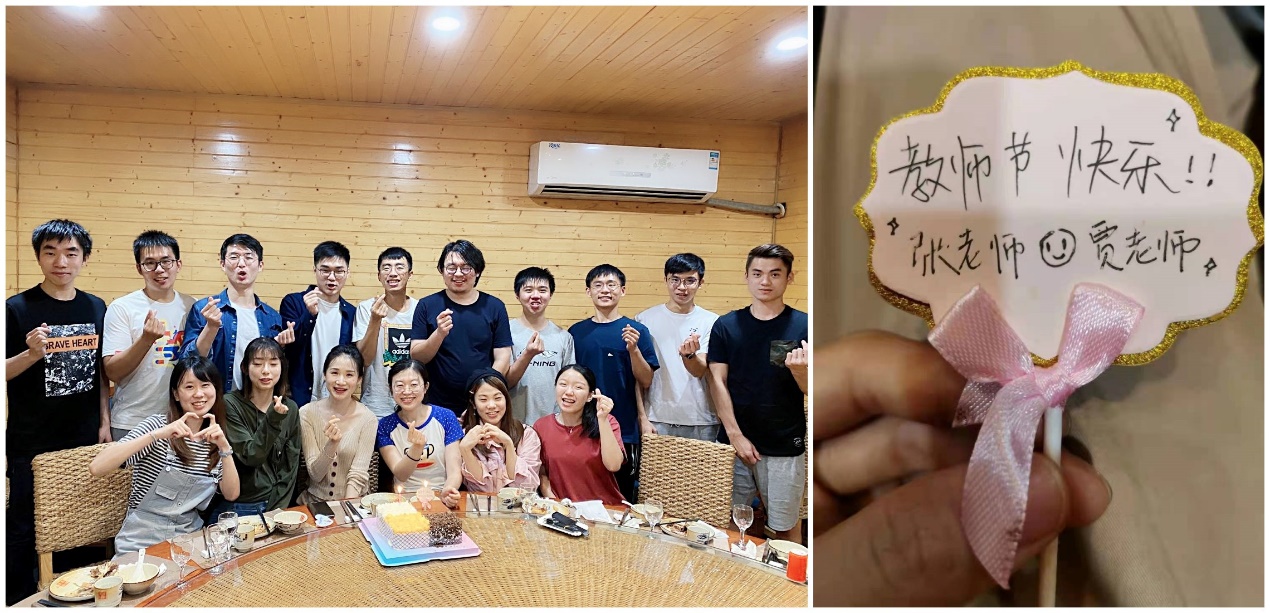 教师节欢聚(左图前排左三),港澳同学准备的教师节惊喜(图右)