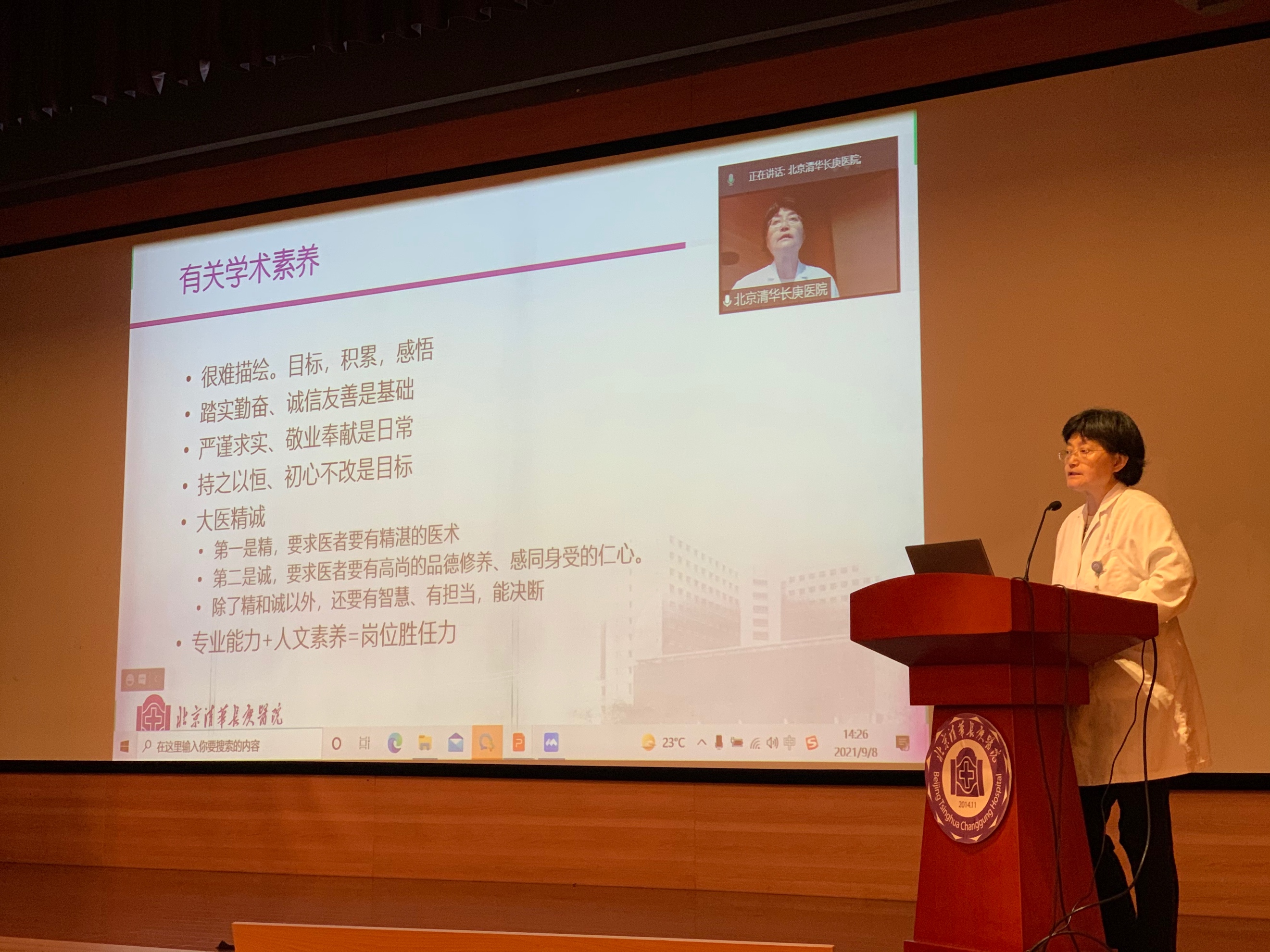 最后,陈旭岩作“医学生的学风道德与学术素养”专题报告。陈旭岩结合医学的学科特点、乐动平台“三位一体”的教育理念,深入浅出地介绍了医学生的学术素养内涵和学风道德要求,以及对学生、导师、教学管理者的要求。她勉励各位同学认真学习,端正态度,顺利完成学业。