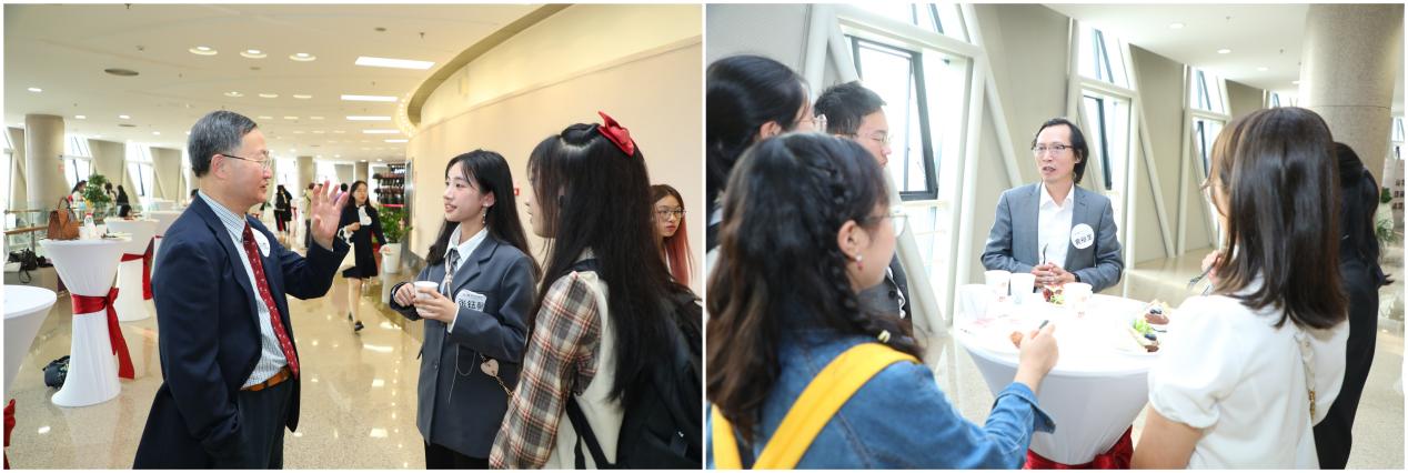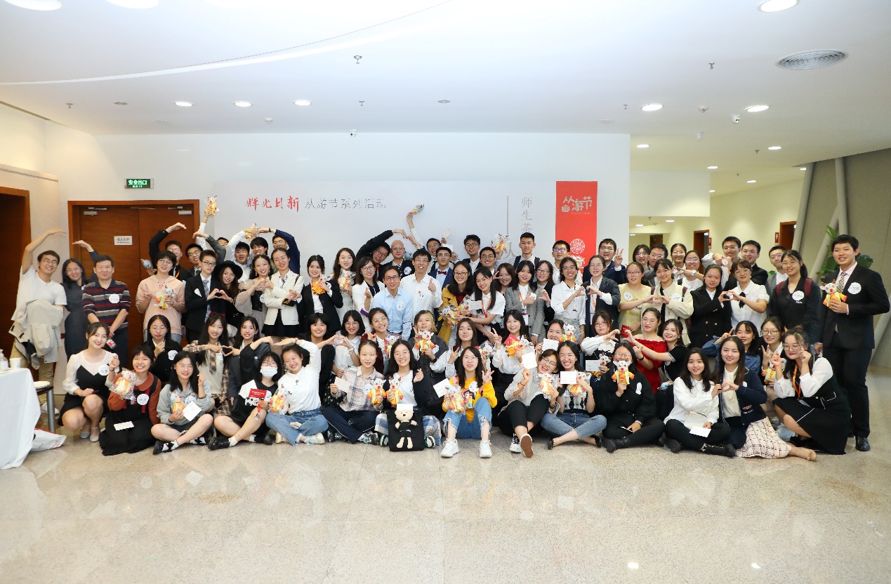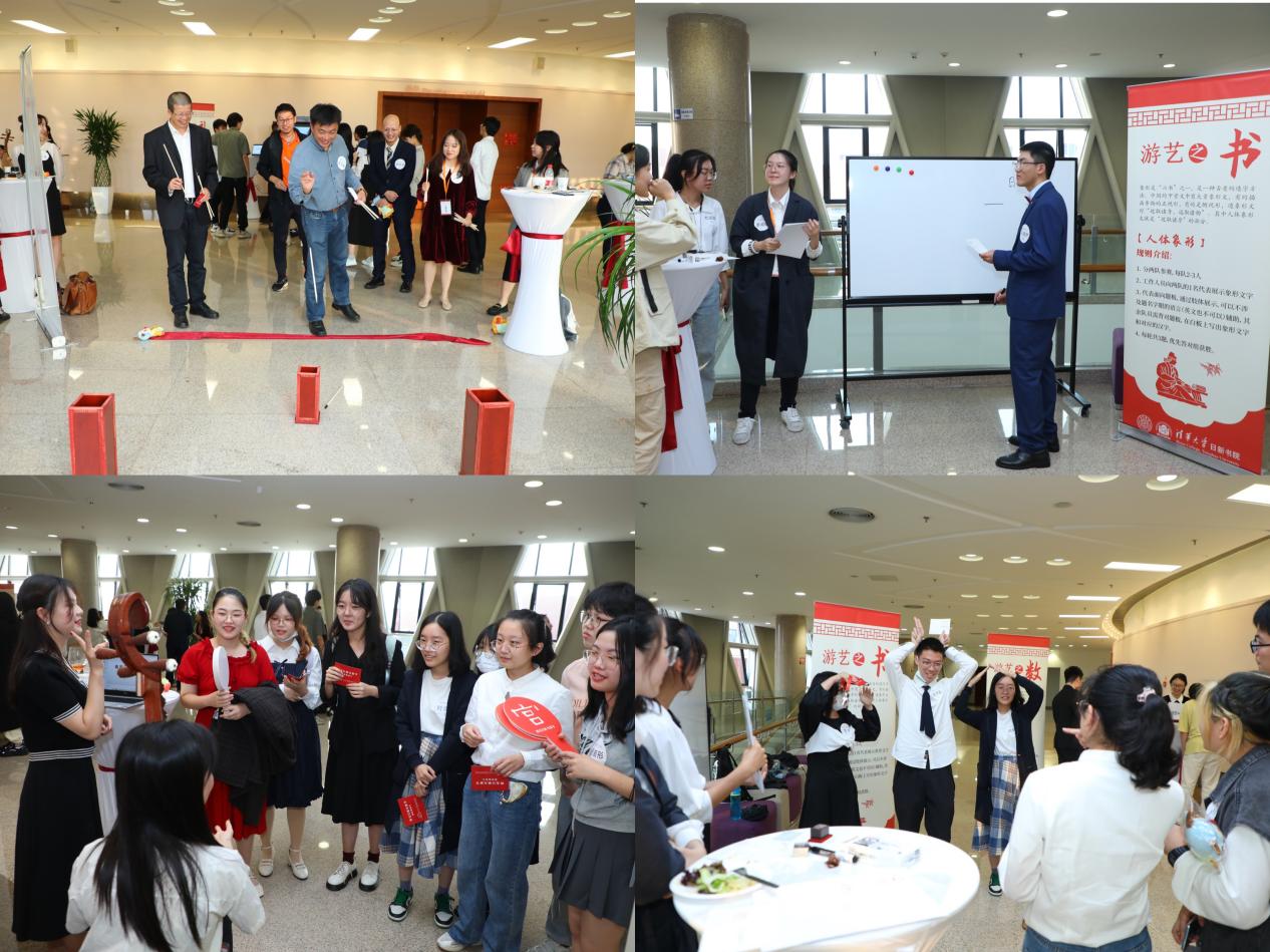 结束了上半场的师生访谈,下半场“师生茶叙——从游之乐”也随即拉开帷幕。活动伊始,王中忱作了简短致辞,鼓励同学们更积极主动地做从游文化的创造者。随后,师生在剧场外的环廊中自由交流,共同体验以“礼、乐、射、御、书、数”六艺为主题的传统文化游戏环节,“辉光日新”从游节在轻松愉快、其乐融融的氛围中圆满结束。