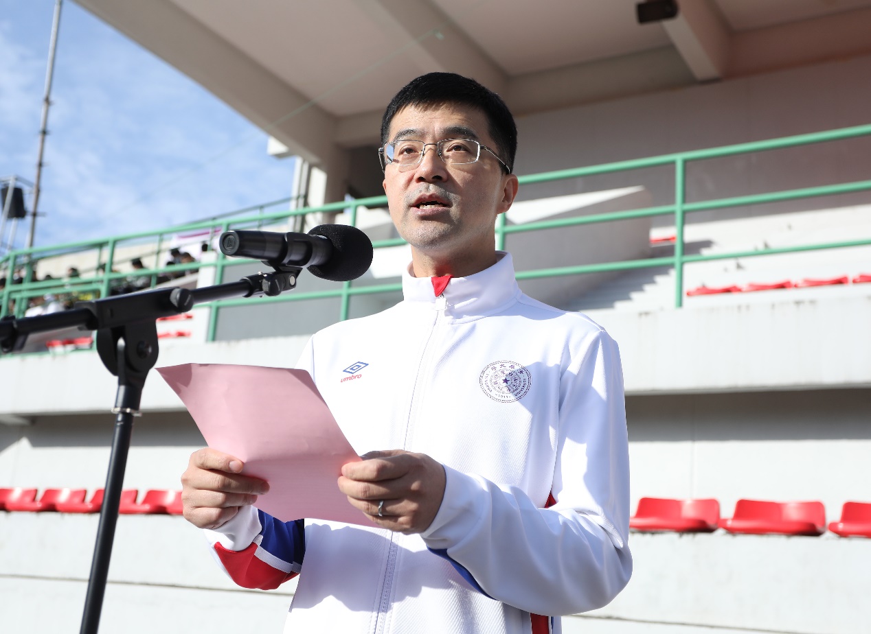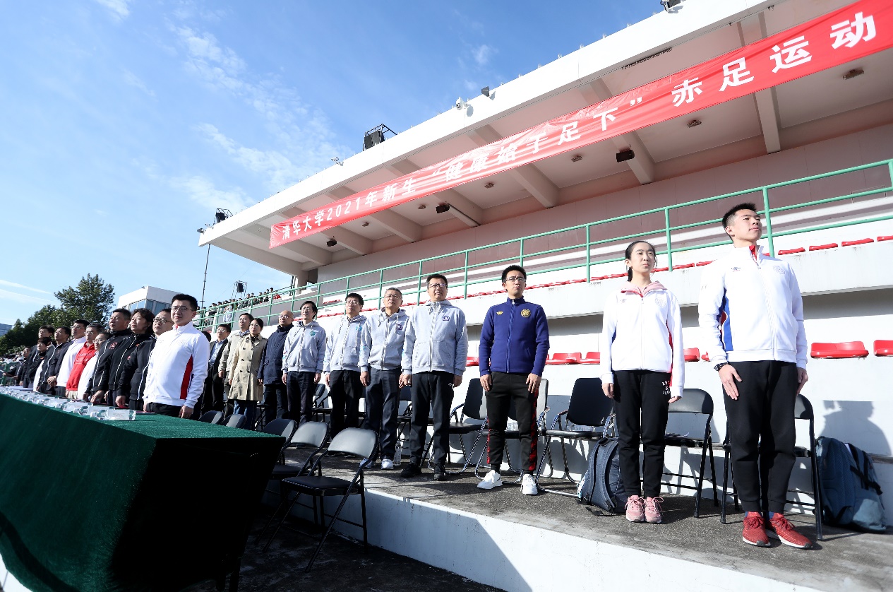主席台上,过勇代表学校对新生赤足运动会的召开表示热烈祝贺。他回顾了2021级本科新生的第一堂体育课并强调,乐动平台历来高度重视体育教育,从耳熟能详的“为祖国健康工作五十年”口号,到贯穿全年、拥有40多个单项赛事的“马约翰杯”体育竞赛,多方面体现了清华优良的体育传统。他表示,新生赤足运动会拉开了学年“马约翰杯”竞赛活动的序幕,作为一项清华独具特色的传统赛事,希望新生们尽情体验赤足奔跑的新鲜畅快,感受挥洒汗水的运动魅力,从运动中提升勇气、信心和毅力,在协作中培养公平意识、规则意识和合作意识,建立有凝聚力和战斗力的集体。