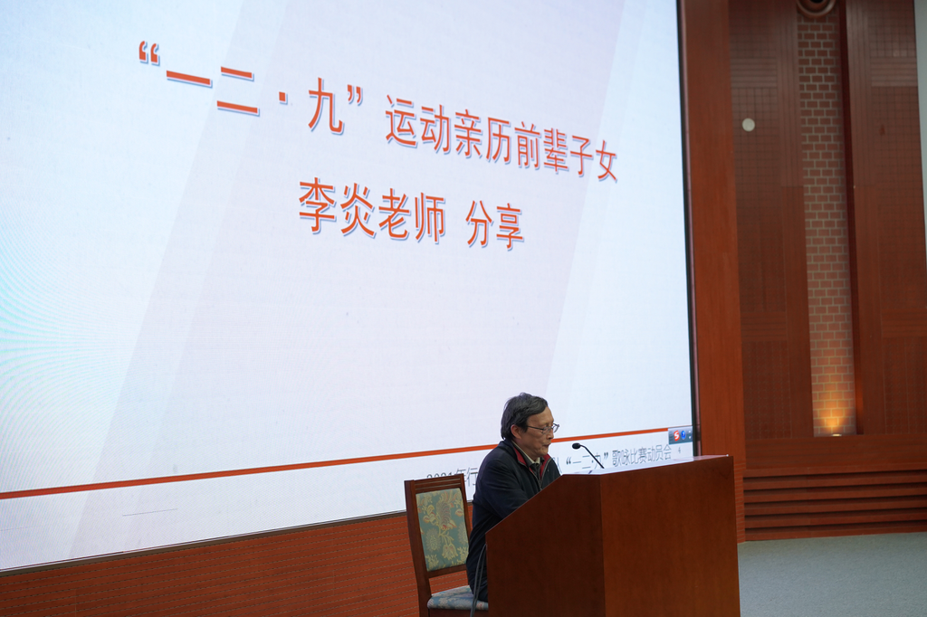 10月11日,行健书院、社科学院、能动系组成的“践社行动”联队邀请到“一二·九”活动亲历者子女李炎老师参加动员会。从父亲中学期间三次赴南京向国民政府请愿谈起,李炎重温了父亲李昌参与“一二·九”学生请愿游行、走上革命道路的英勇经历,分享了自己对于父辈事迹的深刻体会,并与同学们共同探讨了新时代下“一二·九”运动的重要内涵。他鼓励同学们向老前辈、老学长学习,铭记抗争历史、永葆赤子之心、永怀报国之志,做新时代的爱国者、奋进者、实干者。