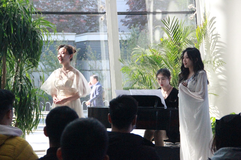 来自中国音乐学院的“破壳团队”依次为清华师生演奏了波隆贝斯库的《叙事曲》《霸王卸甲》以及F.P.托斯蒂的《理想佳人》等曲目,中国音乐学院艺术管理系2018级本科生陈泳如主持本次活动并作导赏讲解。本次展演分为家国、爱情和生命三个主题,每个主题下均有一首中西方的代表曲目。当丝竹之音遇上管弦和鸣,钢琴、小提琴等西方乐器与琵琶、古筝等中国传统乐器交融演奏,碰撞出中西文化和而不同之美,精彩的演出赢得了现场师生们的阵阵掌声。