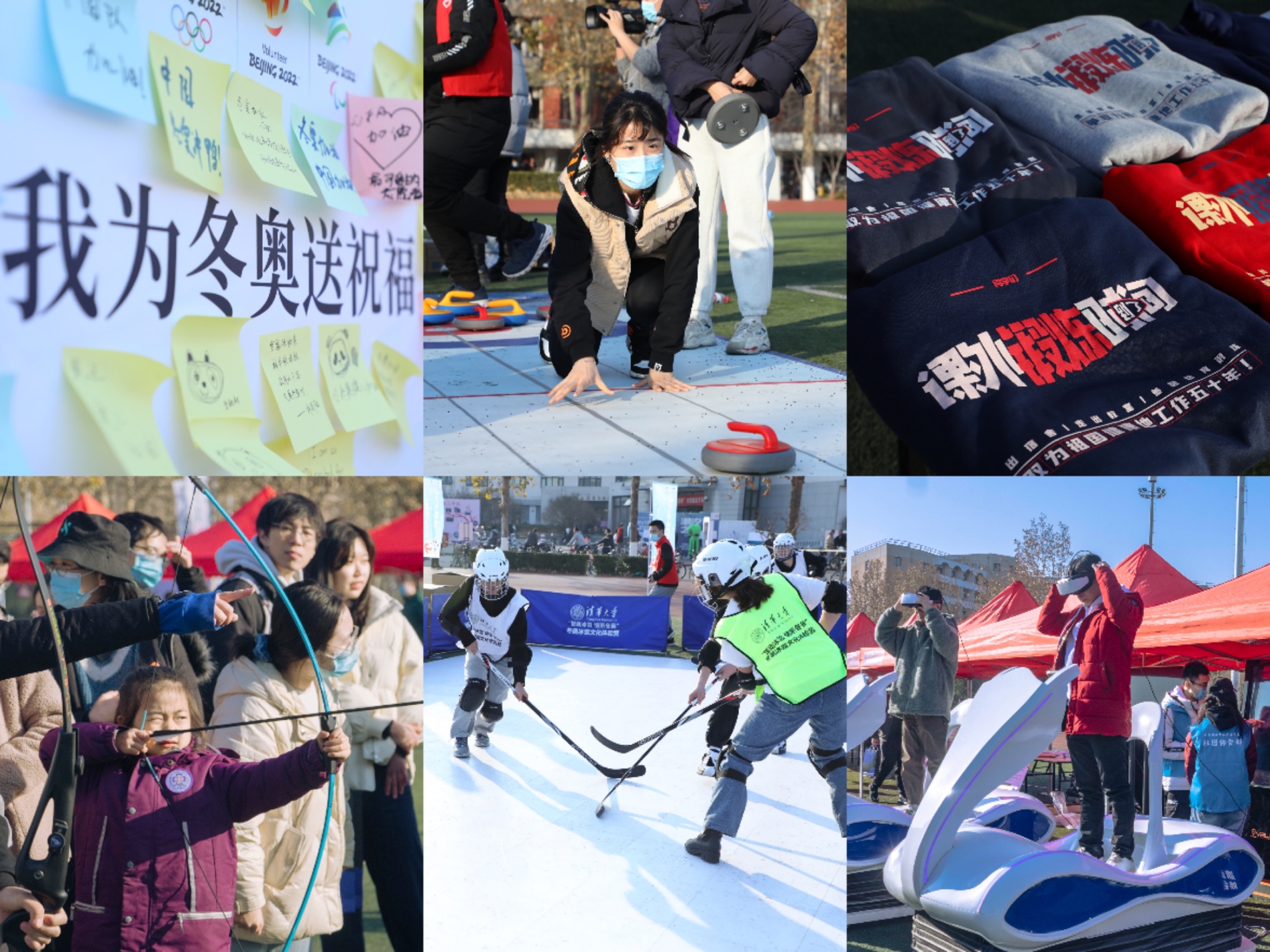紫荆操场上,“燃动冰雪 情系冬奥”冬奥冰雪文化体验营正热烈举办,本次活动设置了冰球对抗、陆地冰壶和冰蹴球三个竞技类项目和冰球射门、冰球拨球、冬奥知识竞答和冬奥主题拼图等体验类项目,旨在通过丰富多彩的活动面向大众普及冬奥知识、推广冰雪运动。冰球竞技场上同学们身着护具,对抗激烈,加油喝彩声此起彼伏。体验营已前往北京、河北的社区和学校并结合清华特色的集体锻炼在校内外开展多场活动,累计带领6000余人次感受冰雪运动的乐趣,助力“带动三亿人参与冰雪运动”。