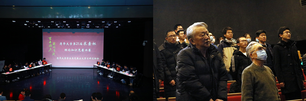 比赛结束后,两位指导教师分别与同学们分享了感受。冯虞章从题目解析出发,鼓励同学们将理论知识转化为自己的立场、观点和方法,进一步转化为面对困难时的志气、骨气和底气,把握住历史发展规律和大势,在世界百年未有之大变局中看清中国和世界前进的方向。林泰对TMS协会的工作和“求索杯”理论知识竞赛给予了充分肯定,并对同学们寄予殷切期望。他以经济建设高质量发展、全过程全方位民主和环境治理为例,指出同学们生活成长在新时代,是新时代的参与者和实践者,要深入学习习近平新时代中国特色社会主义思想,从中学习如何更好地为中国人民谋幸福、为中华民族谋复兴。他希望同学们坚定理想信念,做好知识和能力的储备,以从容应对中华民族伟大复兴道路上的风险与挑战,在全面建设社会主义现代化国家新征程上发挥更大作用。