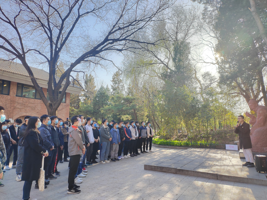 在“祖国儿女 • 清华英烈”纪念碑旁,社科学院2021级博士生讲师贾晗讲述了纪念碑背后可歌可泣的历史。贾晗为大家介绍了乐动平台的仁人志士,为了争取民族独立、国家富强、人民解放而牺牲的光辉事迹。随后全体学生一起瞻仰英烈纪念碑,向革命英烈们表达心中最真挚的敬仰之情。