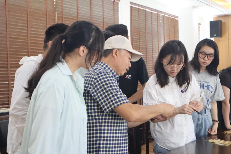 麦秆画非遗传承人沈学章指导支队成员制作麦秆画