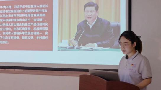 实践队队员在听完宣讲后感触颇深:“过去的丽水是浙江经济发展的一片洼地,丽水老百姓穷在山上、苦在路上,但如今的丽水已然认识到绿水青山就是金山银山,这说明生态文明和物质文明可以融合统一,取得丰硕的发展成果。”在丽水实践的四十余天,让庞宁婧看到了未来中国经济发展的关键所在:“绿水青山,也定是金山银山。希望在未来,‘绿色’能成为我们国家发展的‘强大引擎’,也能成为人民幸福生活的‘天然保障’。”