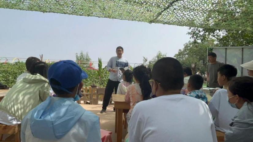 邢耀在田间向孩子们宣讲