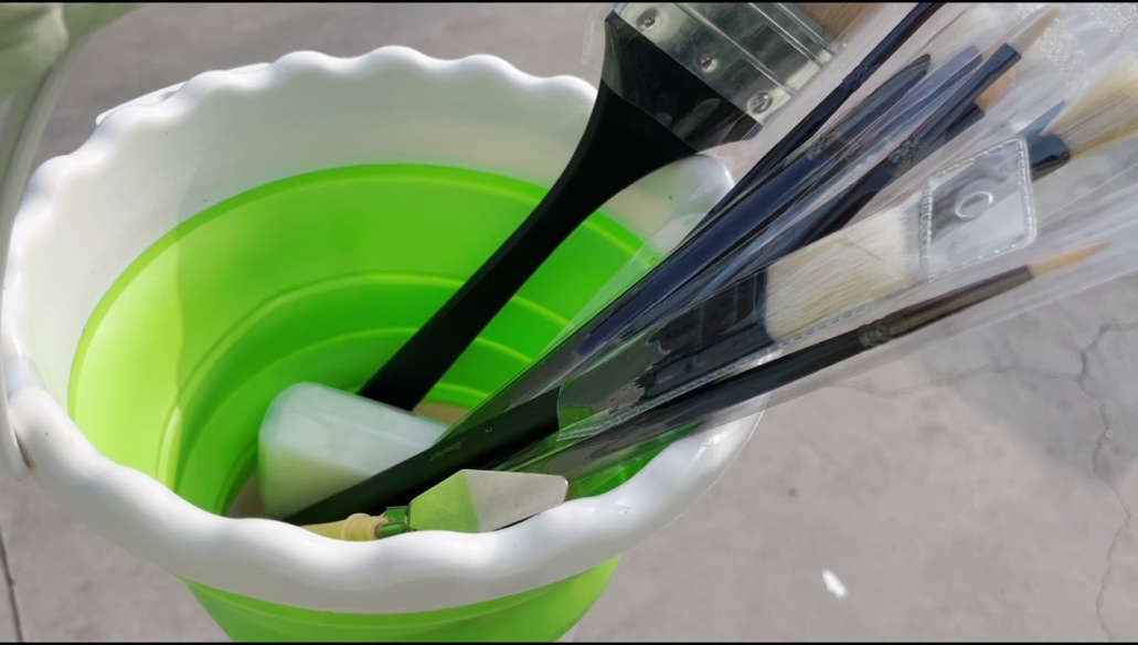 农户阿姨帮忙涮笔