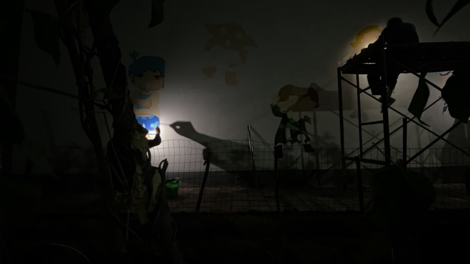 晚上队员们打着手电筒作画,最容易引来飞虫。“我们从没见过这么多蚊子、蛾子和不知名的虫子,它们纷纷往墙面和灯上撞,从最初的尖叫到后来的从容应对,我们已经习惯去欣赏乡村的原生态。在虫唱鸟鸣中作画,也不失为一桩美事。”队员安东笑着说,“凌晨一点时,我回头望了一眼天空,明月朗朗,繁星点点,特别浪漫。”