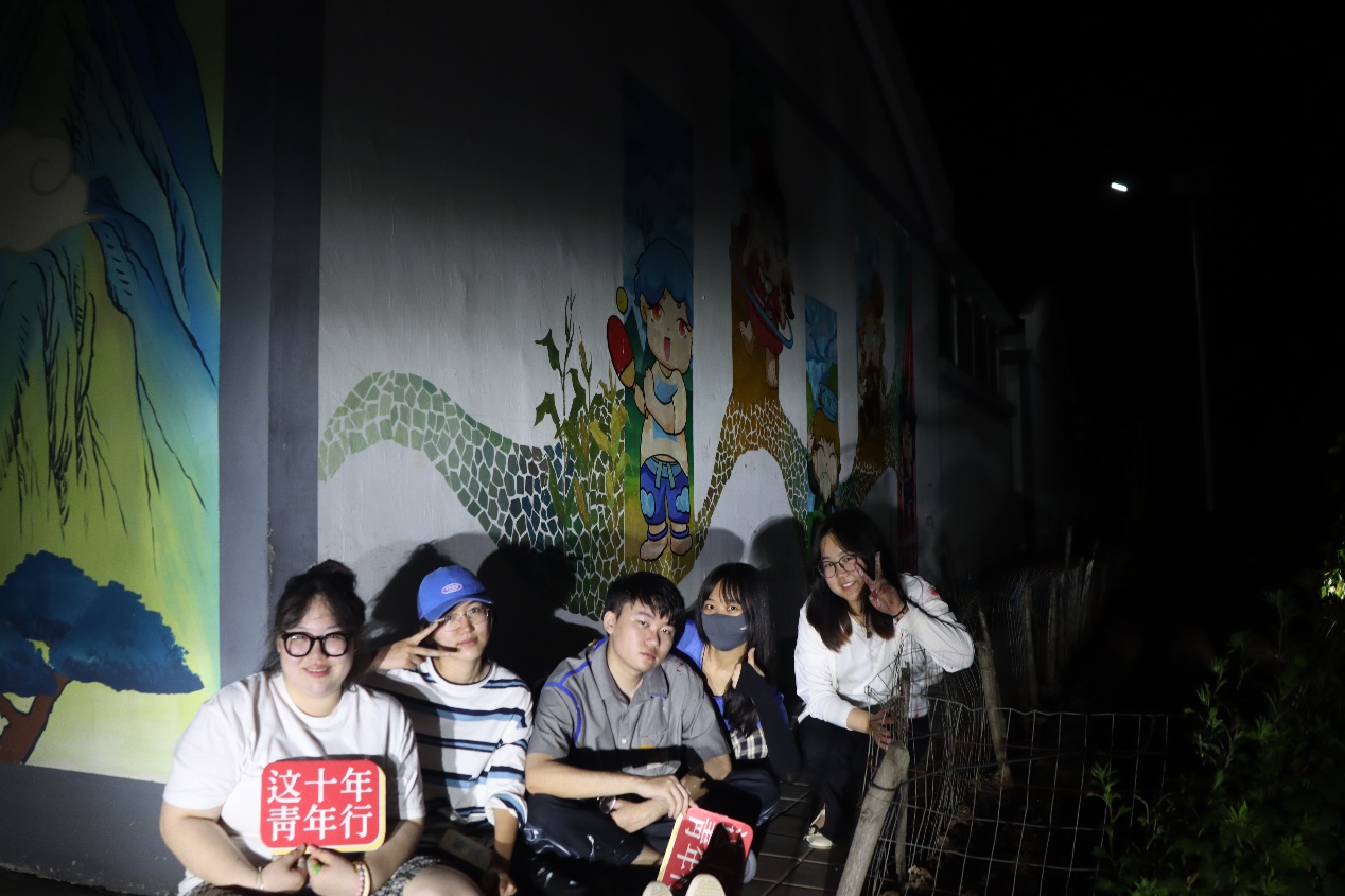 在带着稻香的晚风中作画,在夜幕闪闪的繁星下作画,在斑驳粗糙的墙体上作画,对于队员们来说都是无比新奇的体验。这次经历,令队员们感触最深的是中国乡村振兴这篇大文章中蕴含的美与和谐。