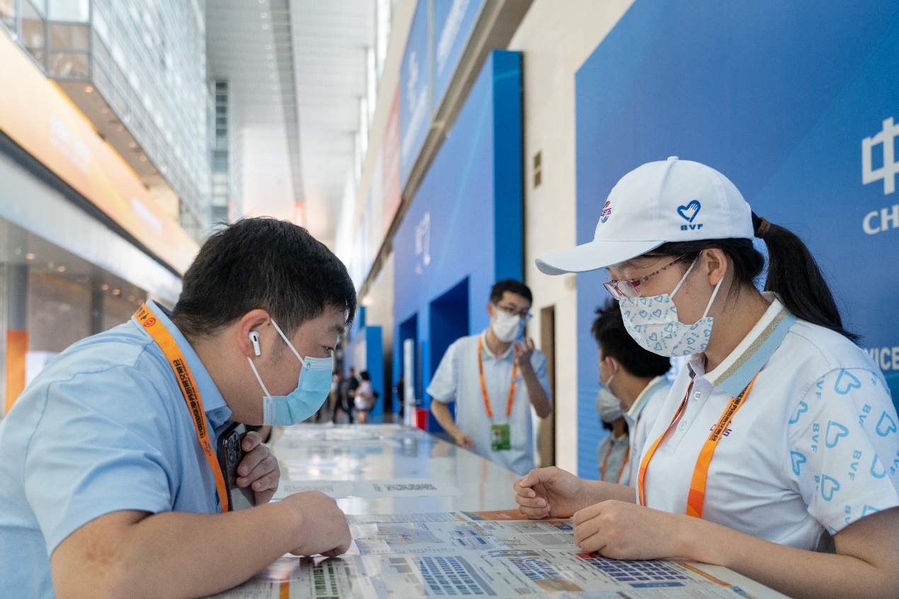 经过通用培训、岗前踏勘和实地演练,志愿者们于9月1日起正式上岗参加志愿服务,一直服务至9月5日服贸会结束。在国家会议中心,志愿者们承担着室内咨询服务岗工作,负责提供路线指引、信息咨询、应急救助等服务,用青春、朝气和责任心为精彩的服贸会作出了自己的贡献。
