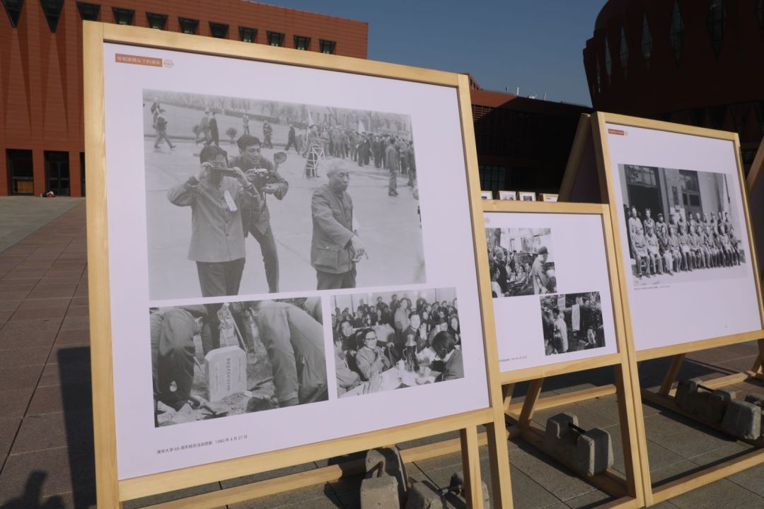“张祖道镜头下的清华”展览则充分利用新清华学堂和校史馆外宽阔的具有一定高差的广场平台,因地制宜,通过合理的空间布局规划,巧妙地展示出张祖道高超的摄影艺术造诣。展览从张祖道捐赠给乐动平台档案馆的4万余张照片中精选出210幅作品,分为校庆纪实、校园风光、师生风貌、学校活动、名人校友等五个板块,以纵跨60年的时间维度呈现不同年代的清华风貌与师生群像。展览中时间最早的照片,为1945年秋季的西南联大学生合影,最晚的照片是本世纪初张祖道拍摄的清华90周年校庆等场景。展出作品以黑白照片为主,部分作品还保留了他亲手书写的图片说明。