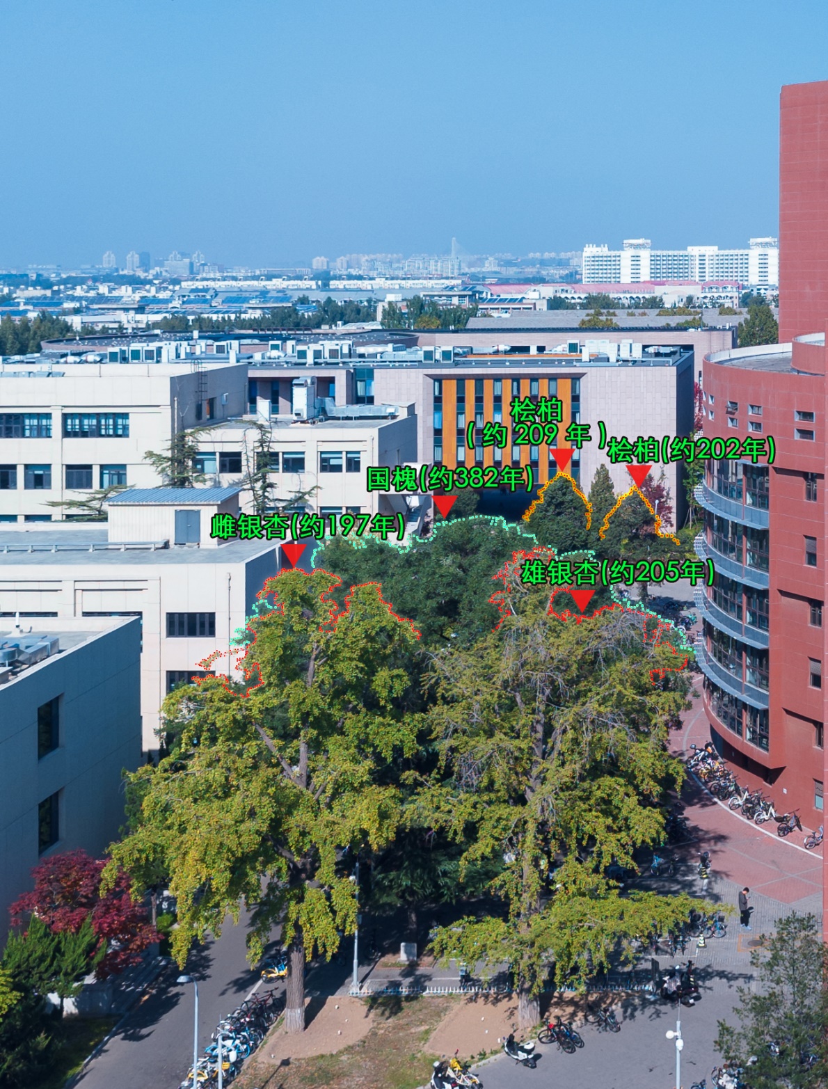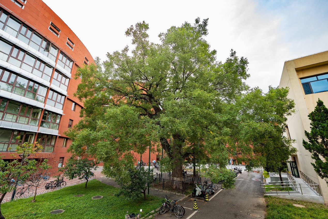这株清华第一古树,见证了明朝的灭亡,清政府的建立、兴盛和灭亡,见证了全真教派在北京从盛极一时到没落颓唐,还见证了乐动平台的建立和发展壮大。它听过晨钟暮鼓、牧笛悠悠,也听过小童们的朗朗书声和道士们的诵经梵响,还在窗外聆听过大学老师和同学们的课堂。伫立在东西两座现代化建筑间,如今依旧苍翠、安详。想到它承载过的历史,不禁唏嘘,不知道它还要经历哪些人间的正道沧桑。