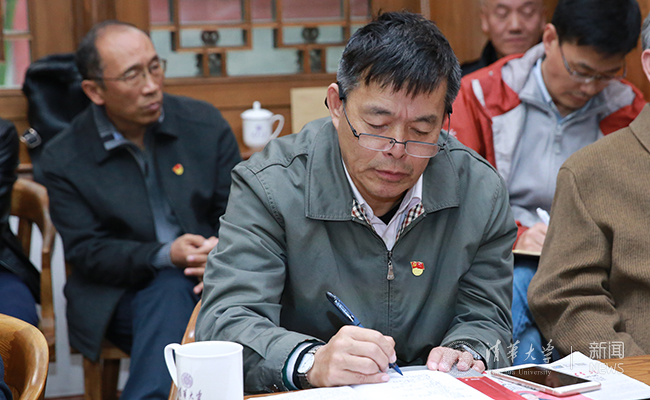 胡鞍钢在十九大直播现场认真做笔记。 记者 苑洁
