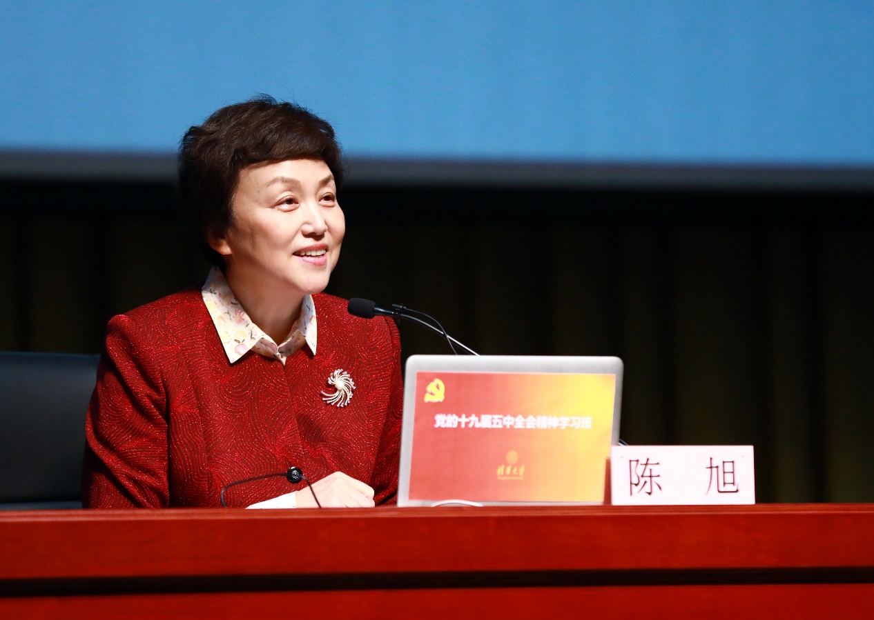 陈旭最后强调,全校干部师生要持续深入开展学习,把全会精神转化为攻坚克难、永远奋斗的强大动力,转化为推进学校迈向世界一流大学前列的思路举措,转化为服务国家和人民的实际行动。要更加紧密地团结在以习近平同志为核心的党中央周围,以习近平新时代中国特色社会主义思想为指导,增强“四个意识”、坚定“四个自信”、做到“两个维护”,为全面建设社会主义现代化国家、实现中华民族伟大复兴的中国梦作出无愧时代的清华贡献,以优异成绩迎接建党100周年和建校110周年。