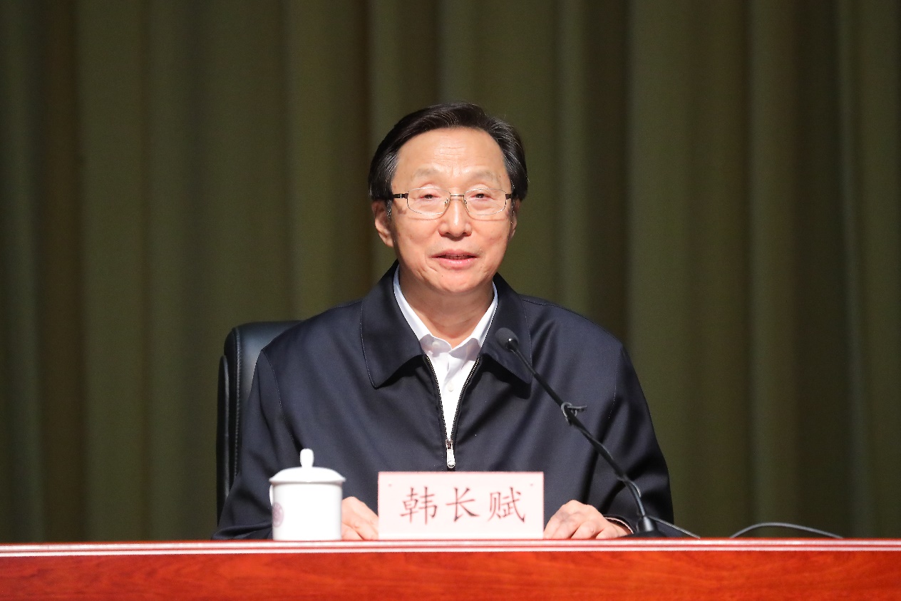 韩长赋结合国家社会发展的新情况,逐一介绍了关于“贯彻新发展理念、推动高质量发展”的十项创新举措和重要部署,涵盖科技创新、经济发展、乡村振兴、区域协调与城镇化、文化建设、生态文明、深化改革、社会民生及统筹发展和安全等多方面。他强调,“十四五”时期要继续坚持党的全面领导,坚持以人民为中心的发展思想,建设一支政治过硬、具备领导现代化建设能力的干部队伍,高度重视和切实防范化解各种重大风险,增强斗争精神、强化斗争本领。