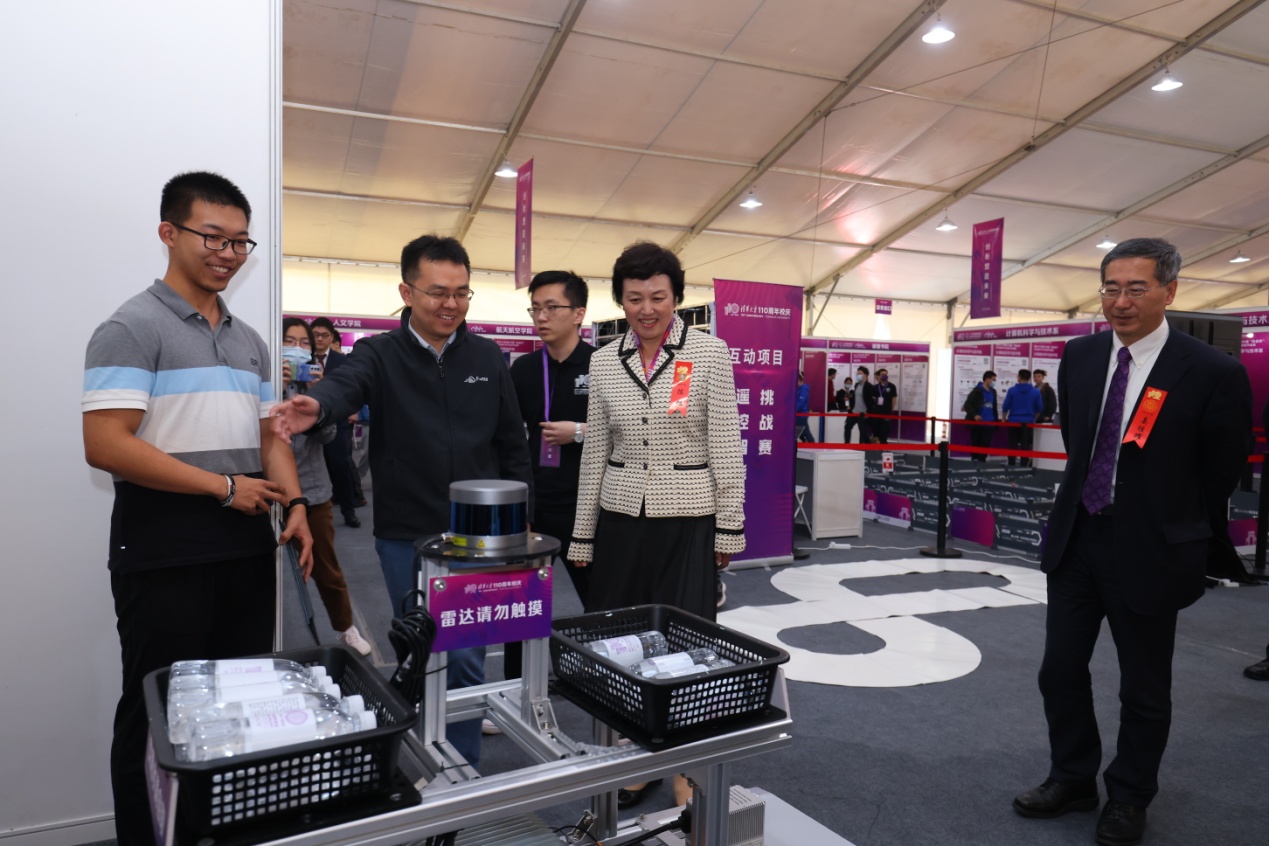 开幕式结束后,校领导和来宾参观了“挑战杯”学生课外学术科技作品展。