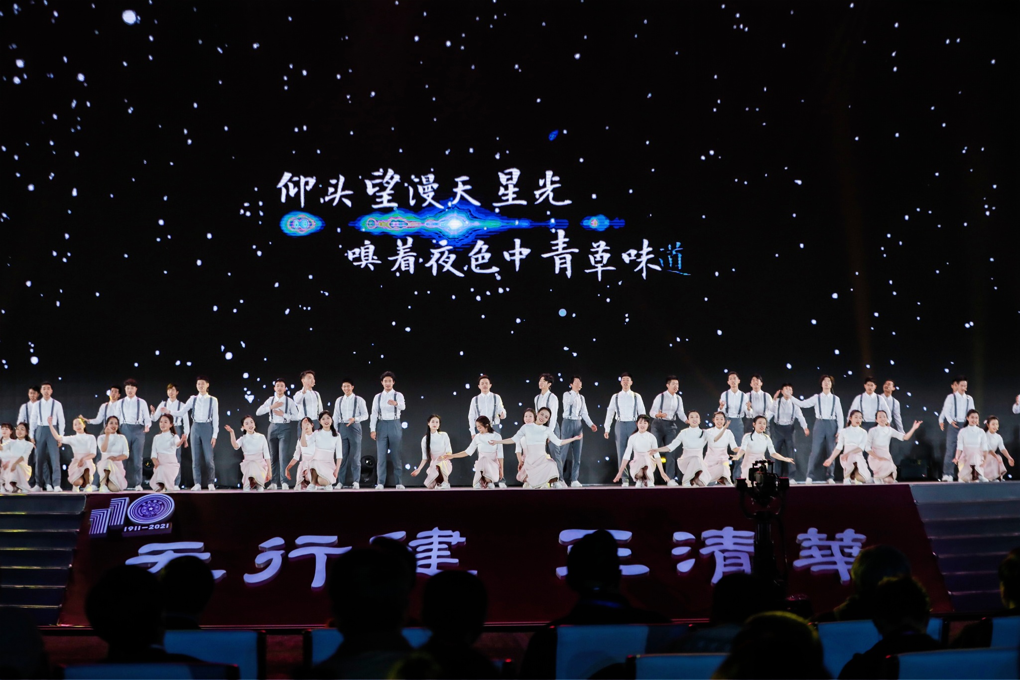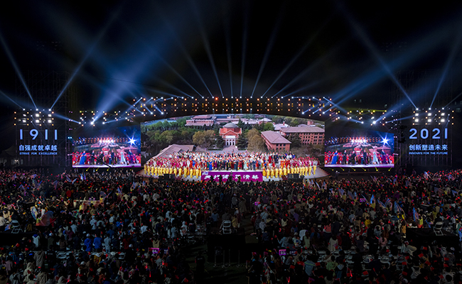天行健,正清华。晚会在齐唱校歌声中落下帷幕。这是一个团圆的时刻,莘莘学子回到母校的怀抱,久别重相聚,脉脉诉衷情。这也是一个圆梦的时代,面向未来,清华将始终不懈努力,为实现中华民族伟大复兴贡献力量。清华人更当砥砺前行、共同奋进,书写自强的精神底色,坚定矢志不渝的创新追求,用思考、选择和行动续写新的清韵华章!