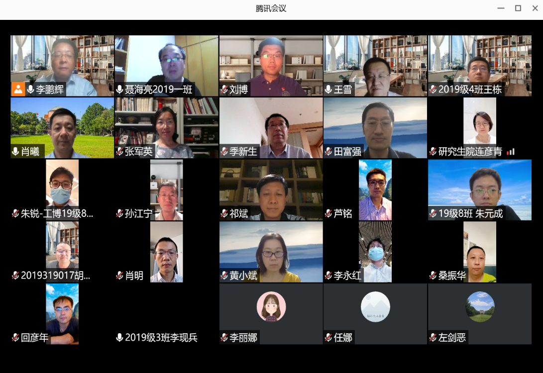 研究生院副院长肖曦、田富强,研究生院专业学位教育办公室主任连彦青,教育中心教学主任左剑恶、学术主任王雪及全体工作人员与来自2018级、2019级的21名学生代表共同参会,会议由教育中心副主任李鹏辉主持。