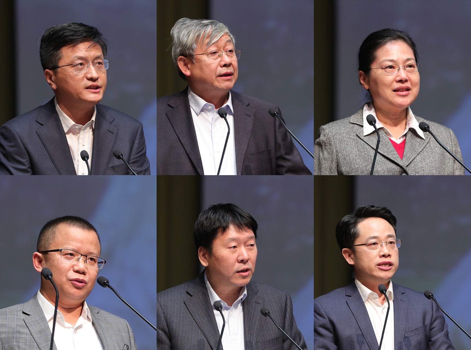 周杰、聂建国、李宇红、肖志刚、张涛、王亚华(从左至右,从上至下)发言