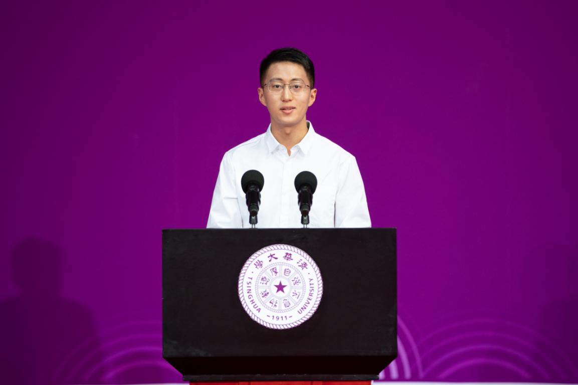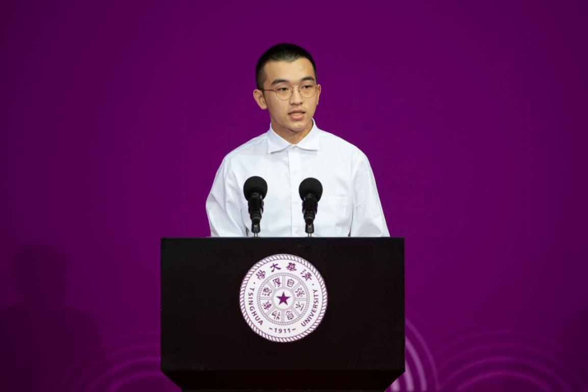 行健书院刘骐瑞作为新生代表发言。他表示,走进清华园,成为清华人,既感到骄傲,也将肩负更多的责任。心怀家国,放眼世界,创新领军,厚植强基,即使是尘雾之微,也可补益山海;即使是萤烛末光,也可增辉日月。我们要将个人理想、人生价值与国家需求紧密相连,投身到民族复兴的伟大事业中去。