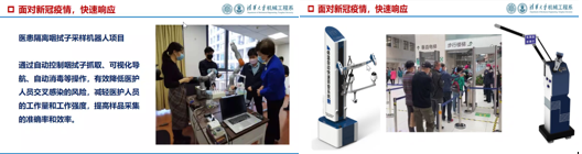 吕志刚带领大家回顾了清华机械人的科研工作与成绩。多年来,机械工程系面向国际学科前沿和国家重大需求,在机械、航空航天、国防、交通运输、能源、电子等国民经济关键开战了基础性、战略性、前瞻性的基础研究和应用技术研究,形成了以IC制造装备及关键技术、机器人及先进制造、增材制造及生物制造、重大装备及关键零部件、仿生与智能生物机械、精密制造与微纳制造、医工交叉等方向为特色的代表性科研成果。面对新冠疫情,机械工程系快速响应、主动担当,开展了医患隔离咽拭子采样机器人、长效低浓度二氧化氯消毒技术等抗击疫情科研攻关项目,积极发挥科研攻关突击队作用,努力交出让人民满意的答卷。