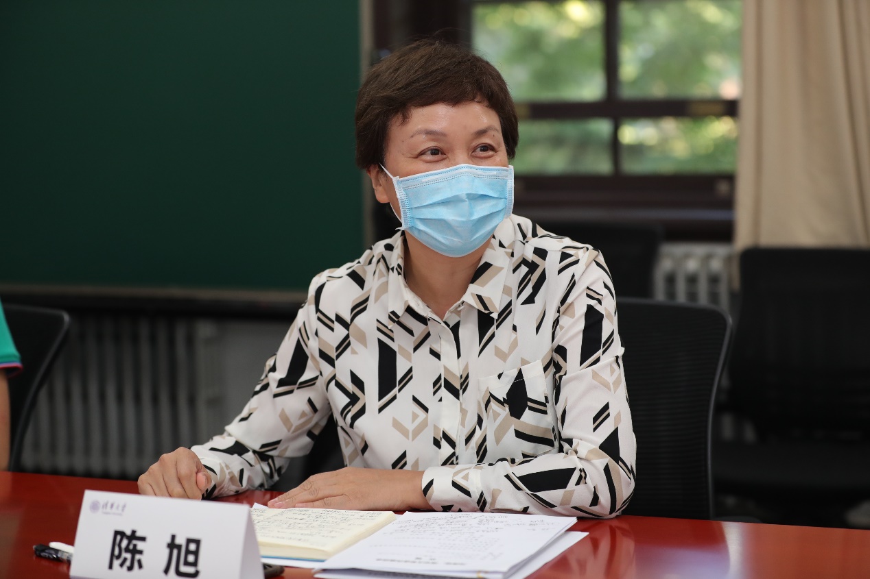 在认真听取完大家发言后,陈旭首先对各位新生的到来表示祝贺与欢迎。她说:“从你们身上我们了解到了今年2020级的本科新生、特别是强基计划新生的整体情况,大家都非常优秀,有着深厚的知识基础、成熟的人生思考以及积极向上的生活态度,对大学生活充满了信心与美好憧憬,期待大家在清华园里继续绽放光彩。”