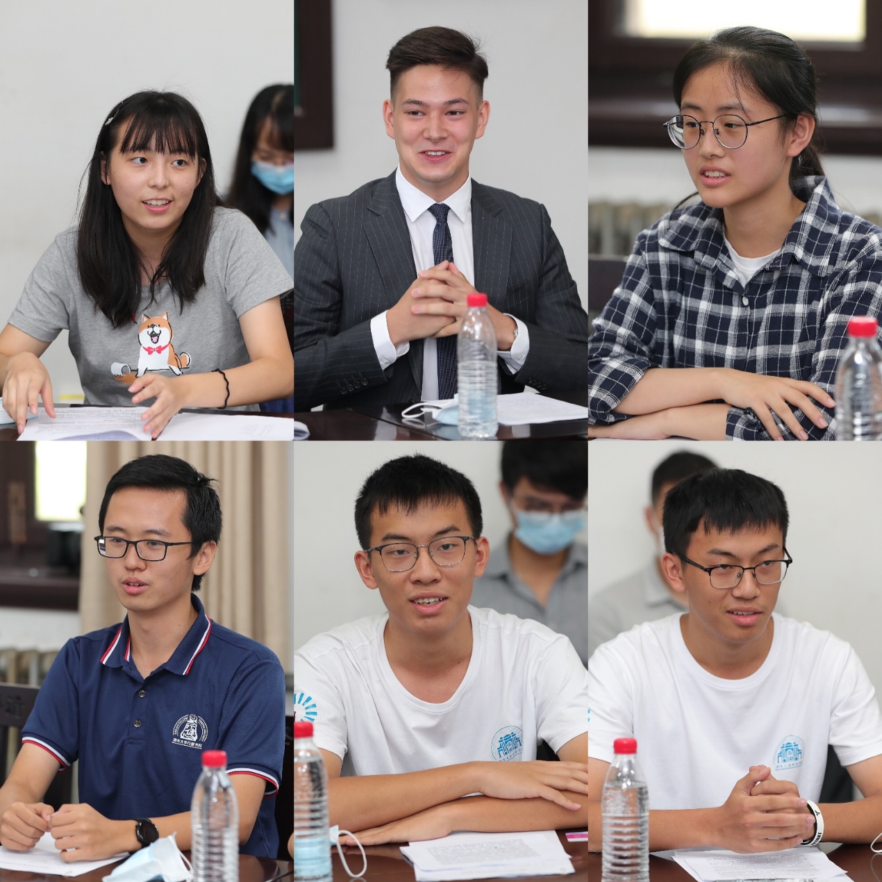 新生们畅谈对清华生活的期待(从左至右、从上至下依次是陶昶、谷尼克、徐倩、程翼飞、祝尔康、祝尔乐)