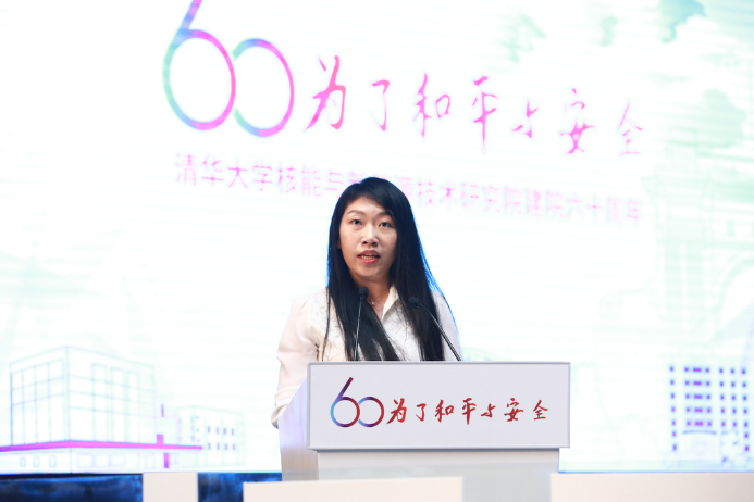 在读研究生代表孙世妍做了题为“清华传统融入血脉,核研院精神伴我远航”的感悟分享。她分享了在核研院的研究生生涯中切身体会核研院特色和精神的过程,表示在今后的人生中,自己也要向老师们一样立志服务国家战略需求,为国家富强、为中华民族的伟大复兴贡献自己的力量。