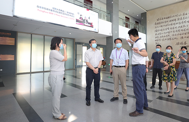 “清华永远是你温暖的家”,C楼前的欢迎展板、毕业留言墙、“朋友圈打卡”留影板,都在静待同学们回家。邱勇详细了解了集中返校停车点准备情况、学生报到以及返回宿舍的具体安排,并现场观摩了学生报到环节的应急演练。