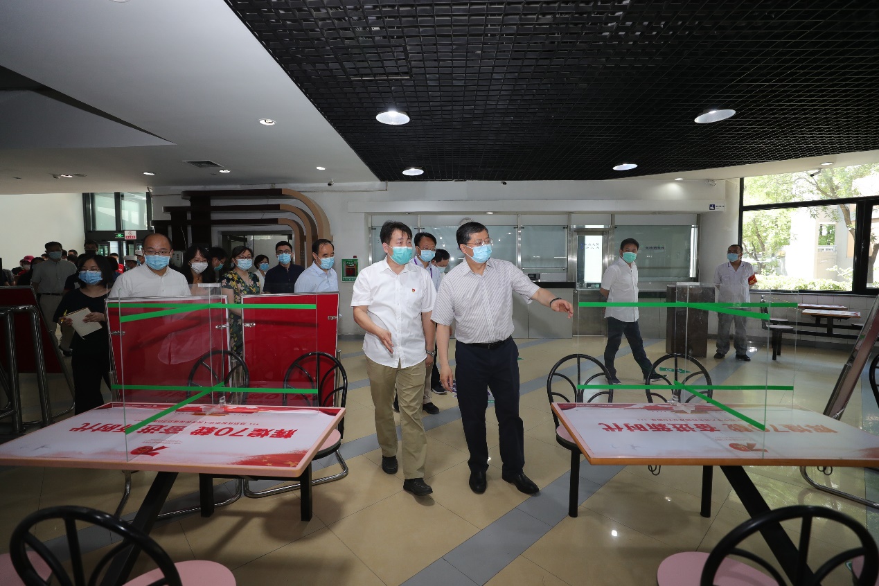 邱勇一行先后来到医学楼、伟伦楼、紫荆园食堂和紫荆公寓学生服务中心(C楼),检查疫情防控情况、学生返校准备工作以及相关应急演练工作。