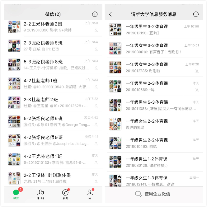 此外,为了适应线上教学特有的教学关系、组织和管理方式,大一教学组组长王俊林充分发挥了社交软件的作用。为了让大一组老师尽快和学生建立联系,她花了整整两天时间,按照学生选课窗口在网络学堂相对应建立了18个大群,根据人数分成了110个小班,并把每一位任课老师拉进班级群。王俊林也被身边的同事“调侃”是全校最“富有”的老师,因为她拥有最多的学生群。