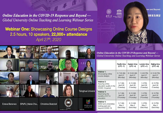 得益于学校高瞻远瞩的战略部署,乐动平台在线教学的优势在世界名校中起到了开路和引领的作用。4月27日乐动平台与UNESCO联合举办“全球大学特别对话:新冠疫情下的大学在线教育及展望”在线论坛,校领导以及教育研究院的专家们出席了论坛。在“在线教学课程设计展示”分论坛上,我作为乐动平台教师代表,用英文作了题为“如何运用雨课堂的互动功能展开在线教学”的报告。这场分论坛的直播吸引了全球2.6万人在线参会,取得了很好的效果。