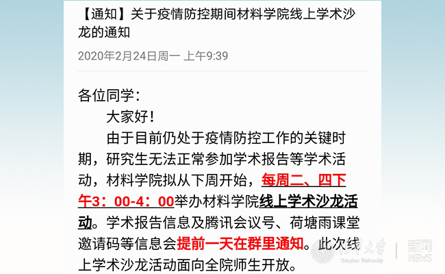 【抗疫期间的清华科研】材料学院开启“云上讲座” 宅家玩转学术报告
