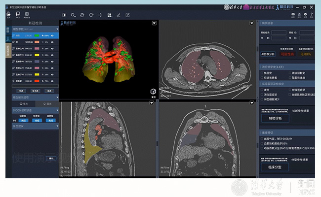 边传输边标注数据,自2月8日起,王博就开始带领14人团队夜以继日地进行算法研发与迭代测试,同时在清华长庚医院的帮助下快速学习新冠肺炎的影像特征,努力打破学科专业壁垒;金烁带领医生团队在完成防疫任务的同时,进行数据筛选复检及与“新冠肺炎诊疗方案”相匹配的研发方向的实时修正,然后将需要修正的内容返回给王博团队;精仪系教师罗川、赵嘉昊24小时随时在线,在每个深夜的远程连线中,帮助解决系统研发遇到的各种问题,并兼顾好学校在线授课与其他课题的工作……在23万张胸部CT影像中,团队标注了21万张肺部轮廓,近2万张炎症区域,18万张肺部血管,同时随着数据的不断积累,进行了9种算法、共30余次的迭代工作,最终测试准确率超过98%。他们用仅仅10天完成了系统的初步研发。