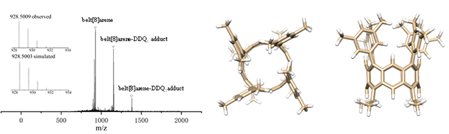 图6. 环带[8]芳烃的MALDI-TOF质谱图以及理论优化的结构