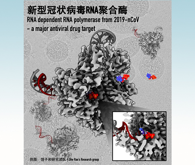 饶子和对冠状病毒聚合酶RdRp的研究始于2009年,十余年间从未停止过探究的脚步。依靠几届师生不断接力优化的经验,在新冠状病毒爆发后短短一个多月时间里,解决了样品表达纯化组装和计算的难题,率先在国际上成功解析新型冠状病毒“RdRp-nsp7-nsp8”复制机器2.9 Å的冷冻电镜结构,提出了瑞德西韦等药物的效应分子抑制聚合酶RdRp的可能模式。