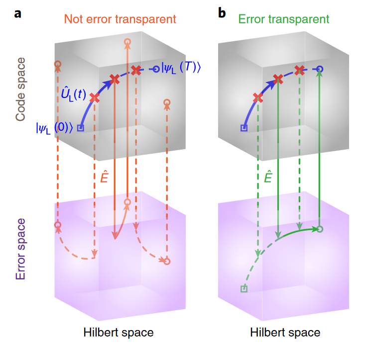 错误透明的相位门操作过程中随机发生的错误可以在其完成之后通过量子纠错来纠正,其相干性能的表现比普通相位门有明显的提升,展示了很好的容错性。