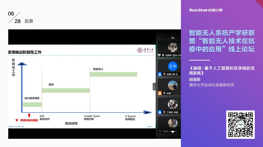 伴随着对已有成果的回顾与反思和对未来新可能的憧憬,本次“抗疫科技与无人系统”线上论坛圆满落下帷幕。张涛最后总结指出,智能无人技术的应用已成为全社会“抗疫”的大趋势,并且备受社会资本的关注,智能无人技术发展恰逢其时。智能无人系统产学研联盟为领域内高校、科研院所和企业提供了充分交流的平台,帮助技术更好更快地实现成果转化。他希望联盟内的企业代表、专家学者、校友一起推动智能无人系统产学研联盟达到全新的高度,为国家、社会和智能无人科技行业作出贡献。