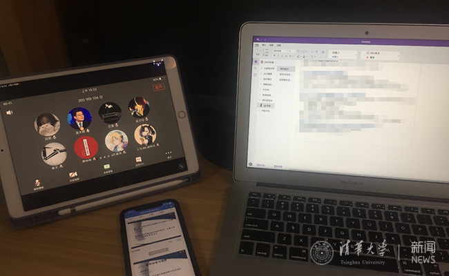 冯玥组合使用了手机、笔记本电脑和平板电脑参与课程
