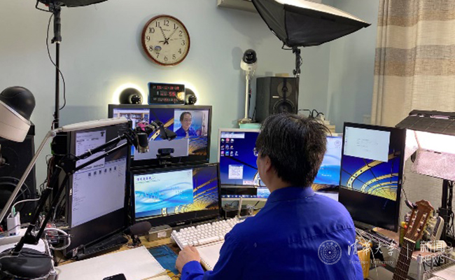被学生亲切称为“卓大大”的卓晴老师早就因“技术流”教学而闻名,此番用起他本人开发的软硬件全套教学装备,完成在线教学毫无压力。更多的老师是从零开始,不断摸索并改进在线教学的软硬件搭配。承担计算机语言类课程的范静涛、刘连臣等几位老师为了更好地展现出课堂演示与实时讨论效果,采用了操作异常复杂的多设备、多屏幕的教学方案。为了备好在线课程,所有老师都使出了浑身解数,微信群里不断有老师交流新的解决方案。行胜于言,老师们以自己的实际行动践行了清华人追求卓越的精神。