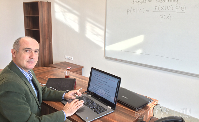 身在土耳其的清华-伯克利深圳学院(TBSI)访问教授尔江(Ercan E. Kuruoglu)在伊兹密尔理工学院临时借了办公室开展他的教学工作。2020春季学期,他开设两门课程——“贝叶斯学习与数据分析(Bayesian learning and data analysis)” 和“ 随机过程 (Random Processes)”,因时差关系,本来早上的课不得不调整到晚上。