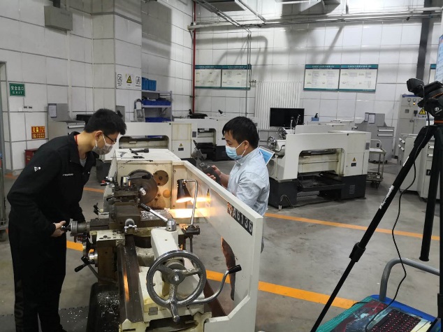 王佐、陈斌为同学们直播车床的操作