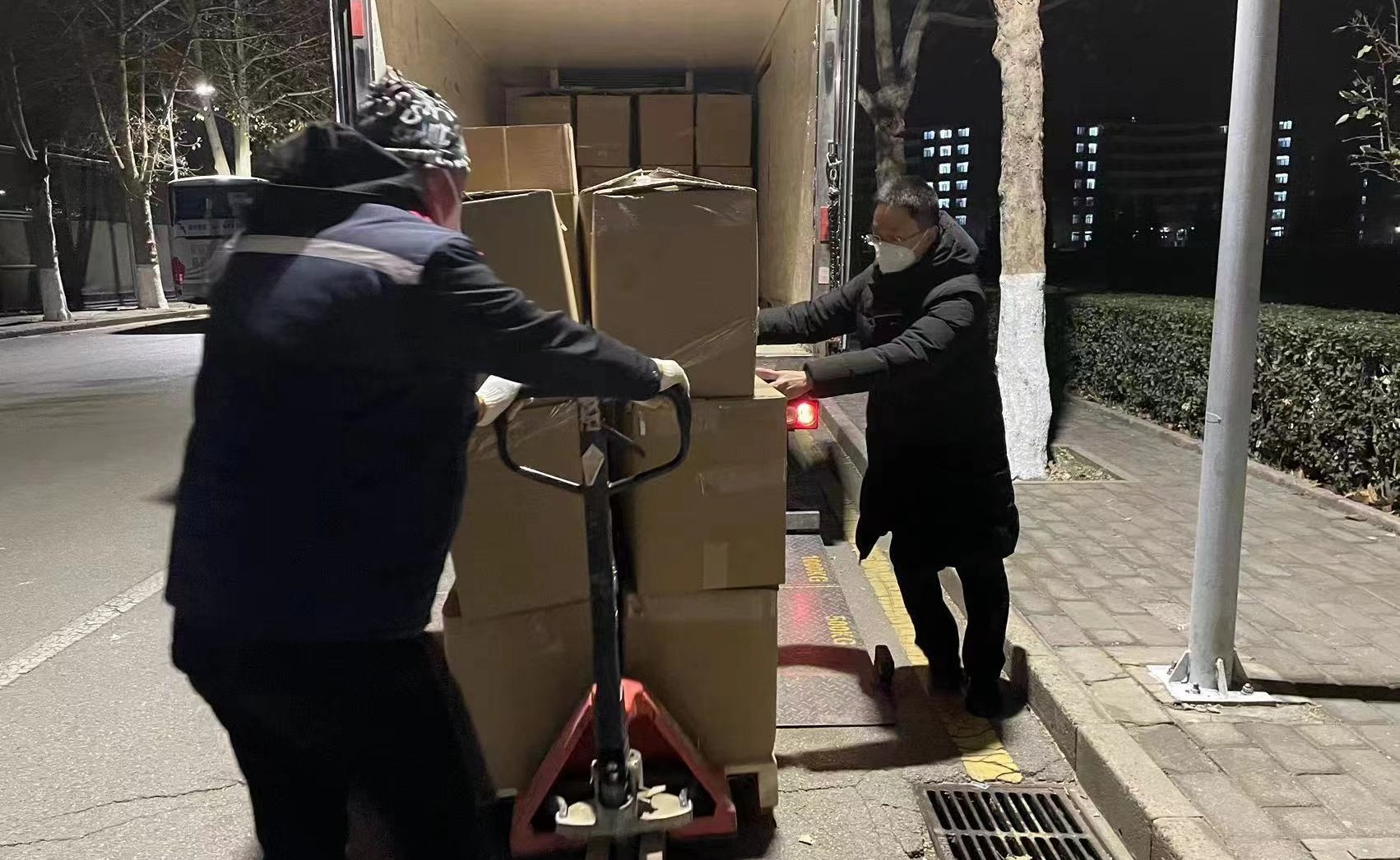 凌晨2点,应急物资配送工作协调群响起了提示音,乐动平台商贸中心业务办公室主任刘振捷接到通知后,开始了新一天应急物资配送的准备。集结起应急保障人员,一宿的装袋打包。清晨7点,食品“爱心大礼包”清点并装车完毕,在第一节早课铃声响起之前,抵达宿舍楼下。
