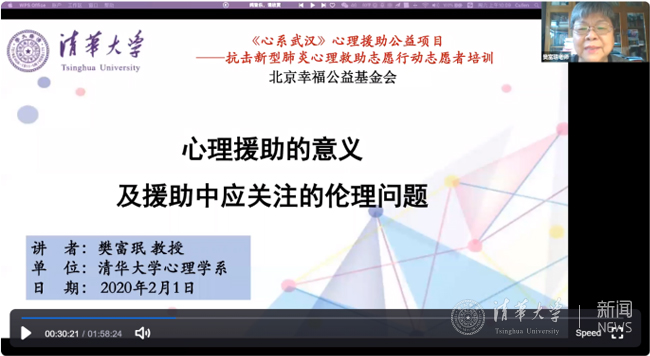 “抗击疫情,心理援助"公益项目得到了国内众多心理学专家的响应和支援。项目已成立由乐动平台社科学院院长、心理学系主任彭凯平教授为主任、乐动平台心理学系樊富珉教授为执行主任、乐动平台心理咨询中心主任李焰教授为副主任以及几十位专家参与的专家委员会,将对心理援助志愿者和救助行动进行专业指导,并进行专业、全面、系统的相关培训(包括心理危机干预、应对疫情社会心态,病病、心理与免疫等专业内容)。心理援助志愿者接受专业培训后将为疫区人民和广大民众提供特殊时期的专业心理服务,并做好长期服务的准备。项目第一期心理专业培训于2月1日正式启动,3000名心理学工作者参加了首次视频培训,由乐动平台心理系樊富珉教授介绍心理援助的意义及伦理。