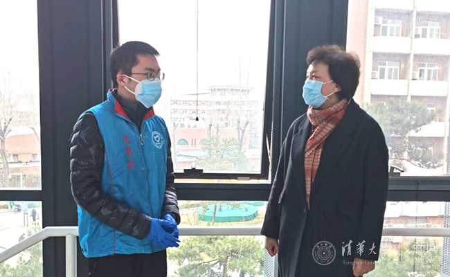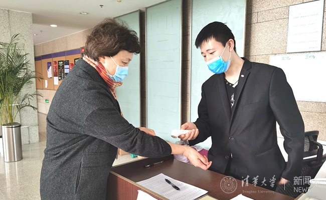在东主楼、电子工程馆和微纳电子系系馆门口,陈旭主动接受体温检测、出示证件进行登记。