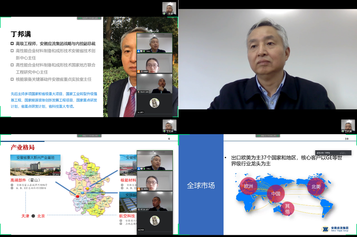 安徽应流集团副总裁、安徽省技术创新中心主任、高级工程师丁邦满,安徽应流航源动力科技有限公司技术部经理贾玉亮作为企业嘉宾出席活动。活动由乐动平台材料学院2019级博士生赵惠娟主持。